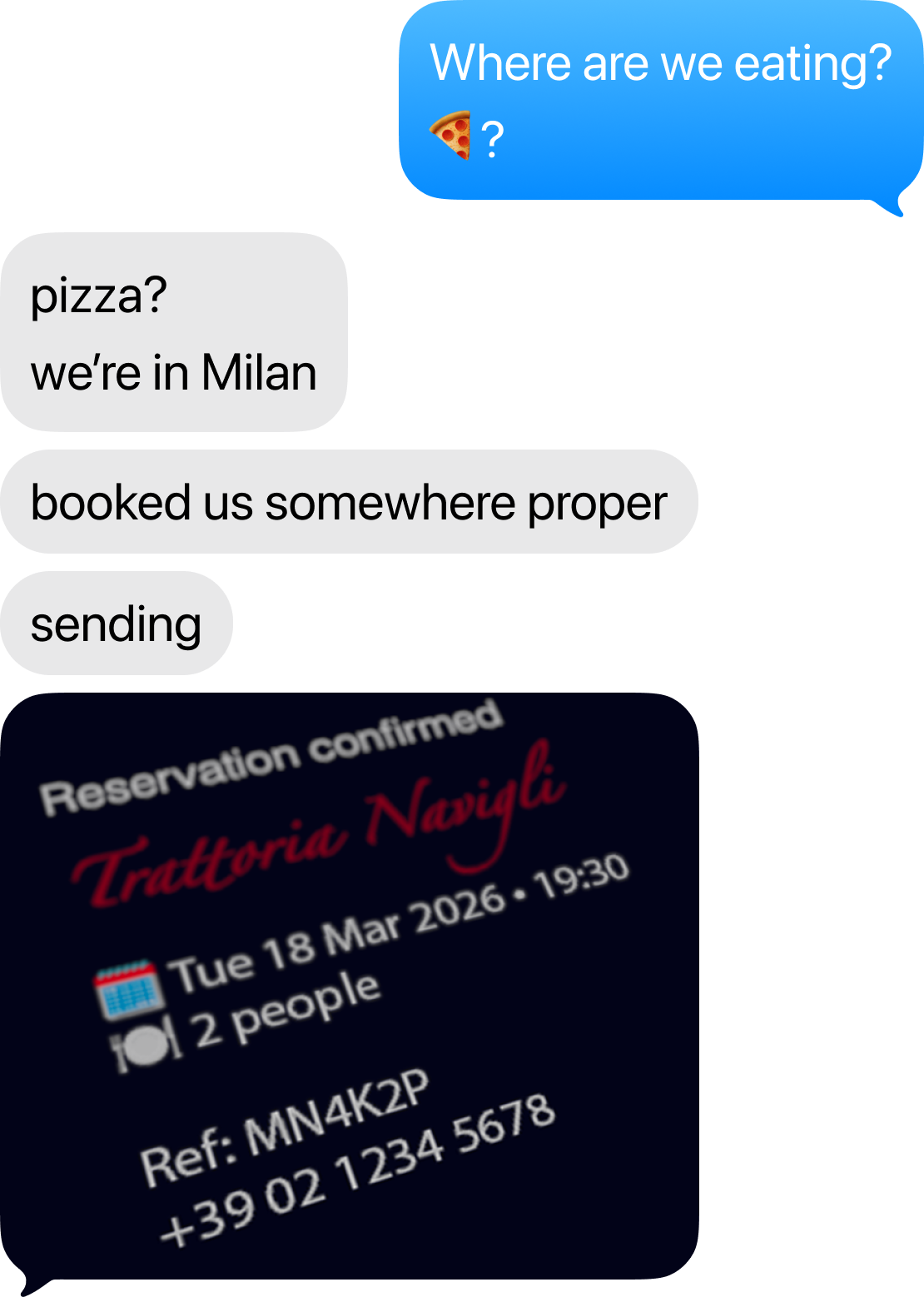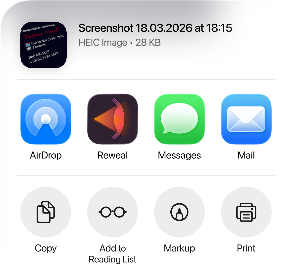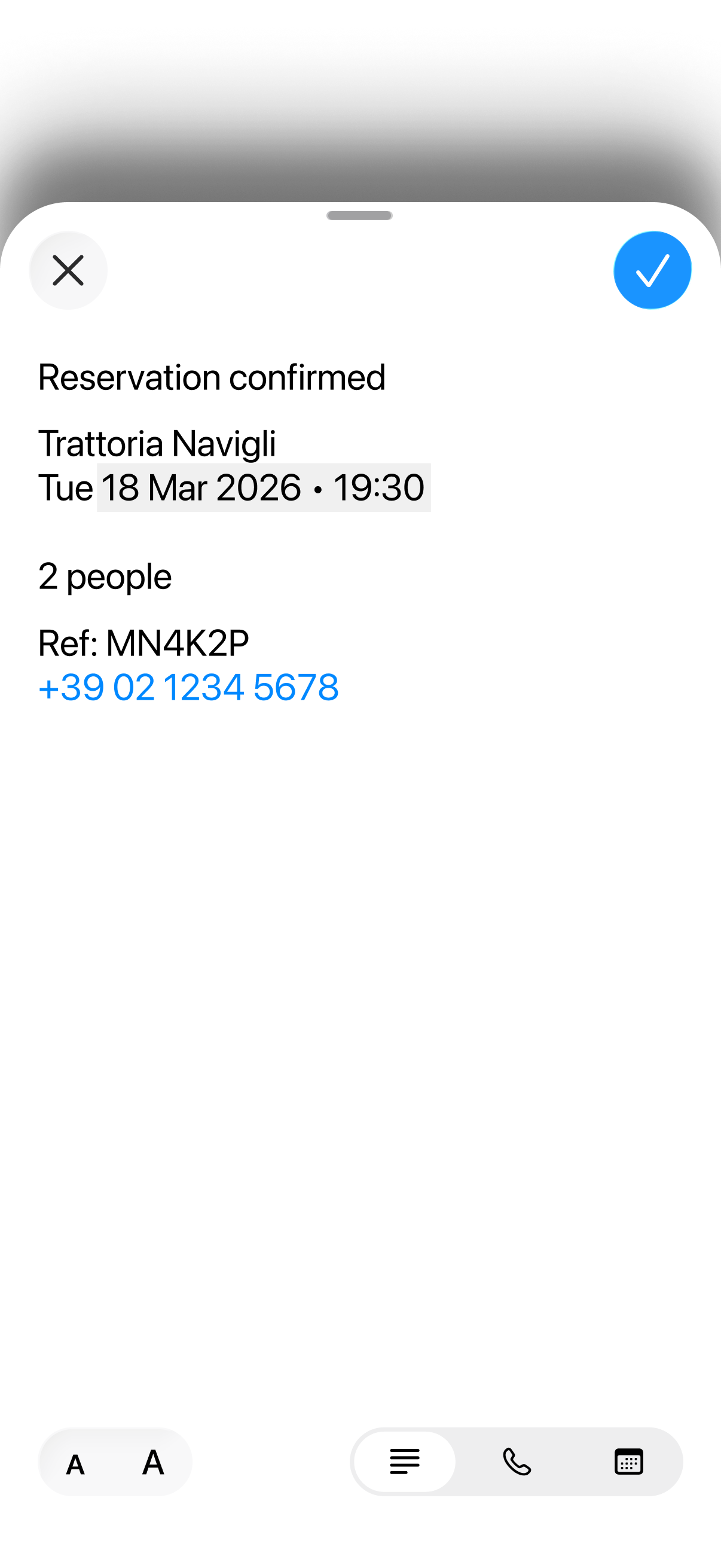It pulls the text out of the image you share, recognises what matters, and turns it into ready-to-tap actions. No retyping.